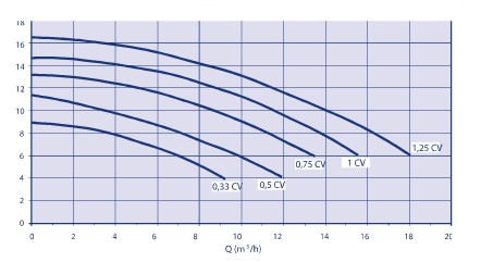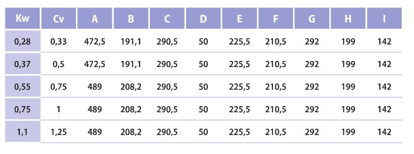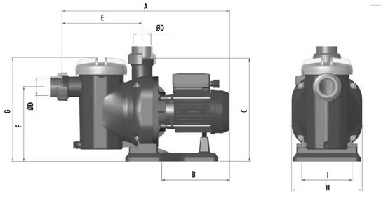 Elle possède un moteur monophasé de 3/4 CV ainsi qu'une protection moteur IP-55, un marquage GS, un isolement classe F. Toutes les pièces métalliques directement en contact avec l'eau sont en AISI-316. Cette pompe possède également un raccordement par raccords union à coller de 50 mm de diamètre.