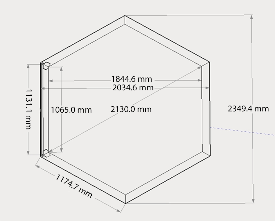 Habillage bois hexagonal pour spas et piscines gonflables / largeur extérieure 2,35 m x largeur intérieure bord à bord 1,84 m x hauteur 0,71 m