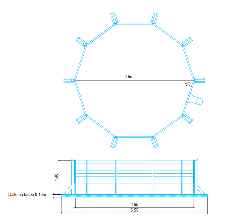 La piscine ronde 01 D de Naturalis se distingue par une structure 100 % béton, incluant des traverses en béton, avec des dimensions de 493 x 143 cm. Elle offre robustesse et durabilité, avec un aspect bois pour une esthétique naturelle qui s’intègre parfaitement dans tout environnement. Adaptable à différents types de terrains, elle peut être installée de manière semi-enterrée, enterrée ou hors sol selon vos besoins.