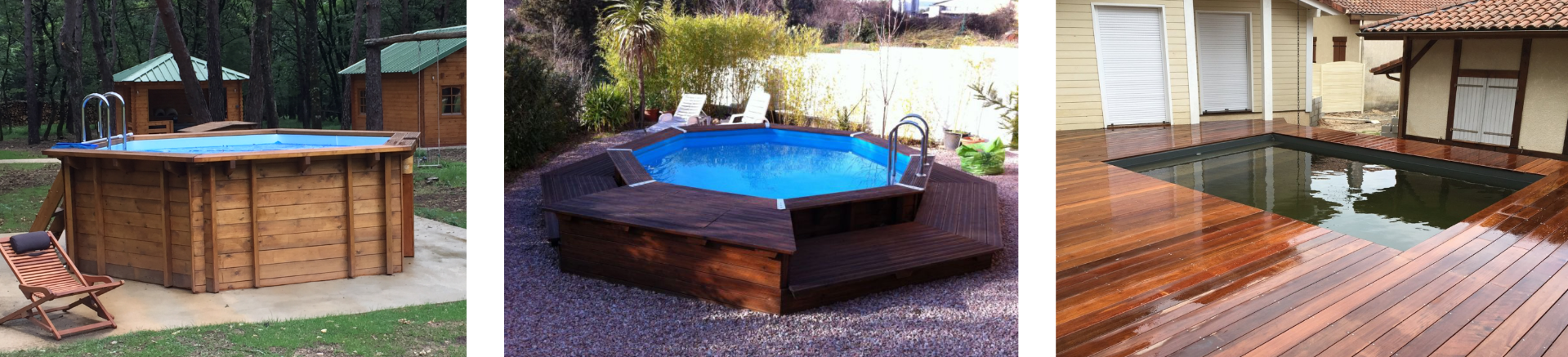Piscine bois Hexagonale 395x117cm Liner bleu