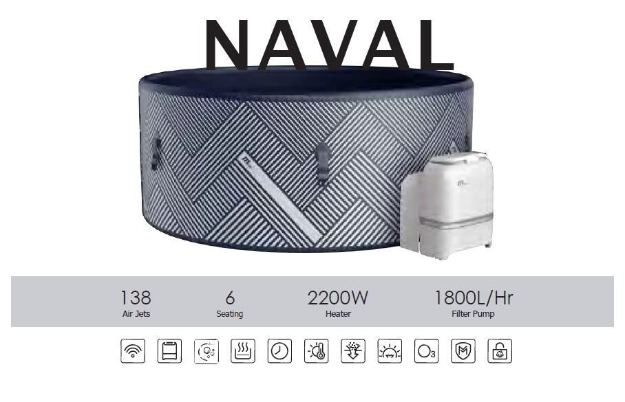 Offrez-vous des moments de détente incomparables avec le spa gonflable NAVAL 3, conçu pour accueillir jusqu’à 6 personnes. Grâce à sa structure en tissu Drop-Stitch haute pression et son liner DWF Naval de 5 cm d’épaisseur, il allie solidité, confort et esthétisme.